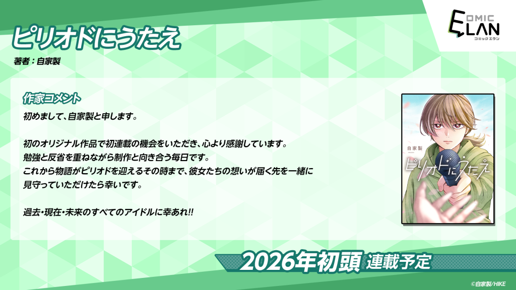 2026年初頭に「COMIC ELAN」にて、『ピリオドにうたえ』の連載が決定いたしました!